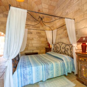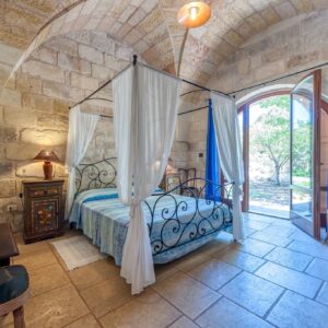 Ha pavimento in pietra leccese e copertura con volte a stella sia nella camera che nel bagno e disimpegno. All’interno un letto matrimoniale a baldacchino in ferro, mobili in legno con tavolino e sedie.